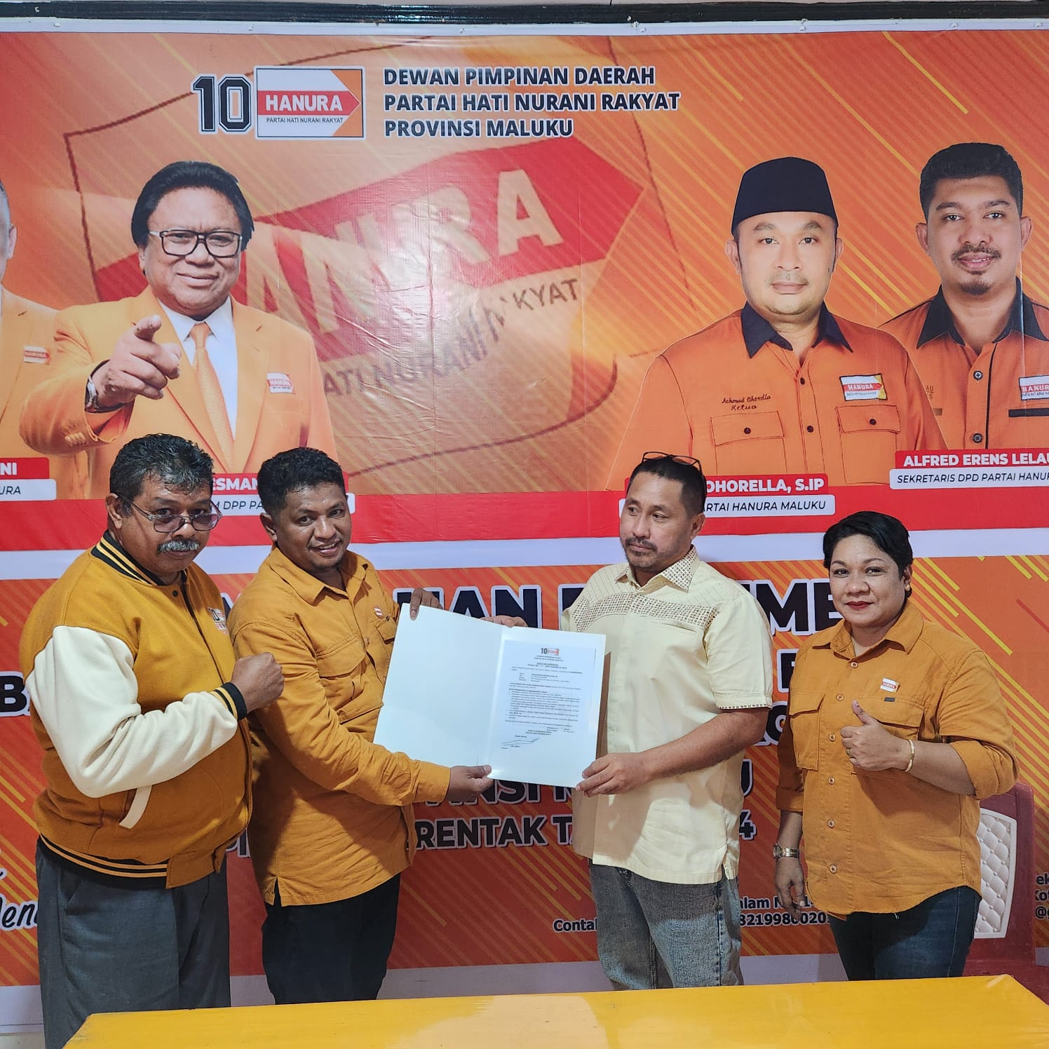 Surat tugas tersebut diterima kedua calon kepala daerah itu di kantor DPD Partai Hanura Provinsi Maluku, di Ambon, Sabtu 1 Juni 2024.