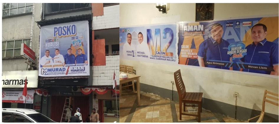 Menurut Koordinator Posko, Muhammad Rusdy, posko tersebut di peruntukkan untuk koordoinasi relawan, simpatisan dan pendukung Murad Ismail-Micahel (2M) dan pendukung serta relawan Agus Ririmasse-Muhammad Novan Liem yang diberi jargon AMAN.